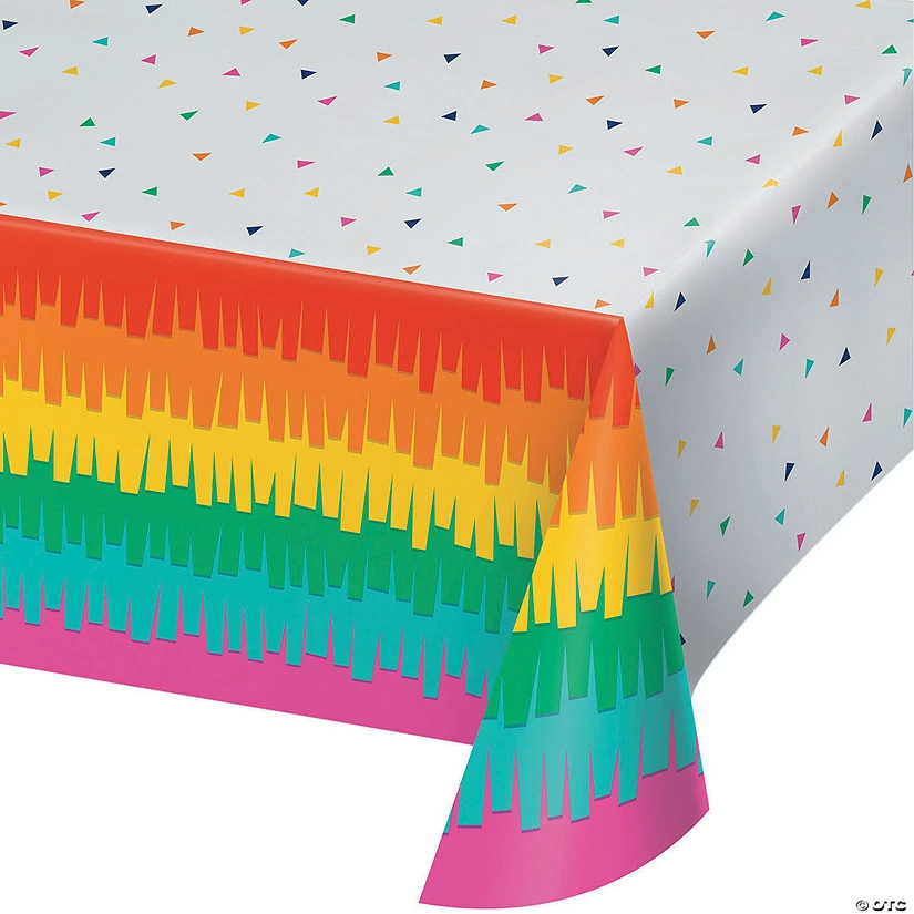 Make sure your fiesta is a smashing good time with help from this Fiesta Fun Tablecloth. An amazing and affordable addition to your fiesta supplies, this colorful table covering will protect your table and make cleanup easier than talking the kids into taking a swing at the piรฑata. Find more Fiesta Fun supplies elsewhere on this website. Plastic. 54″ x 102″