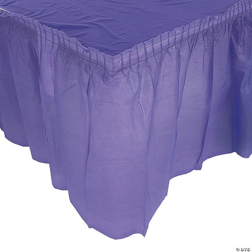 Decorating for a birthday party, wedding reception or other grand event is simple with these plastic table skirts. Available in an array of eye-catching colors to complement any theme, these table skirts are perfect for dressing up a buffet or dessert table. Take any table from drab to fab with these pretty pleated table skirts and shop even more ways to dress up your table top on our site! 14 ft. x 29″