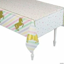 How about a unicorn party! It’s fun and colorful, and this pastel unicorn table covering will add a pretty touch to the festivities. Add more sparkles, gold glitter, rainbows and unicorns, and you’ll have a celebration as rare and awesome as a unicorn itself! Your search for more unicorn party supplies won’t be difficult, just take a look around this website!β’Β Material: Plastic.β’Β Thin, slightly transparent.β’Β Disposableβ’Β Size: 54″ x 102″